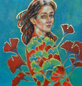 “Gingko’s Muse”, 7×7″ Third Place Award, Mixed Media $225“Breakthrough”, 7×5.5″, $180 Mixed Media