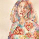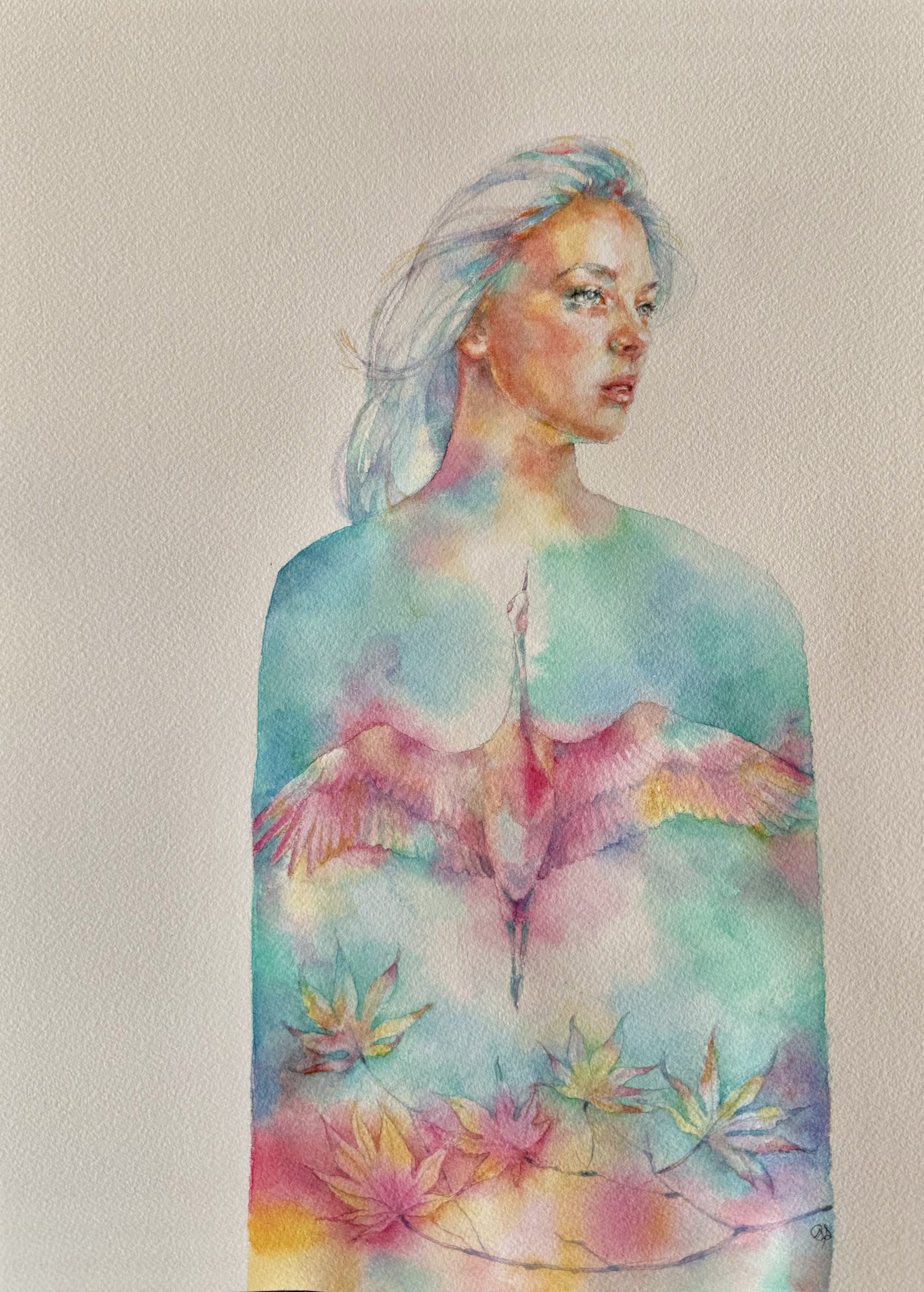 “Self Love”, watercolor, 18×22″, matted and framed, $600
