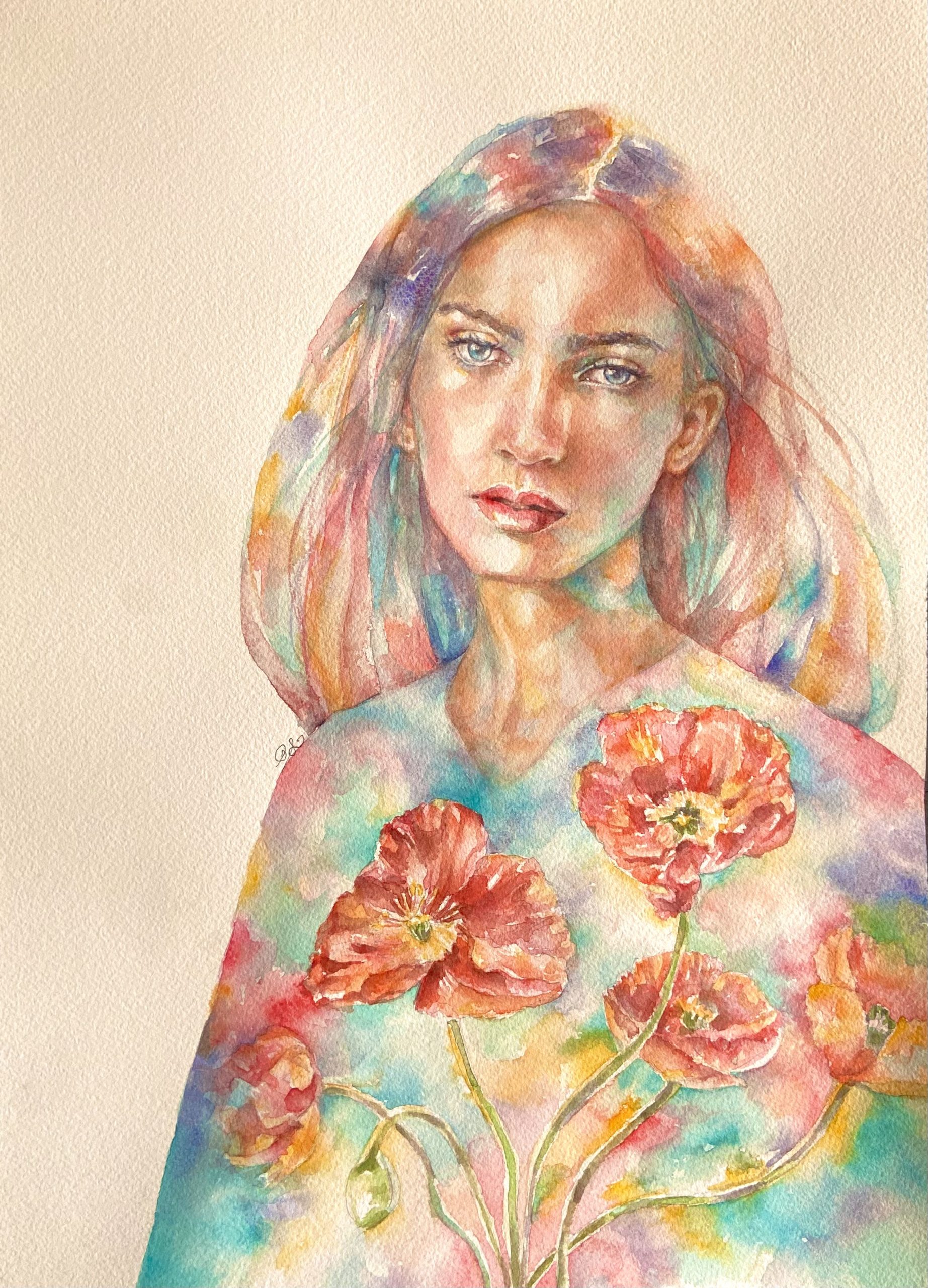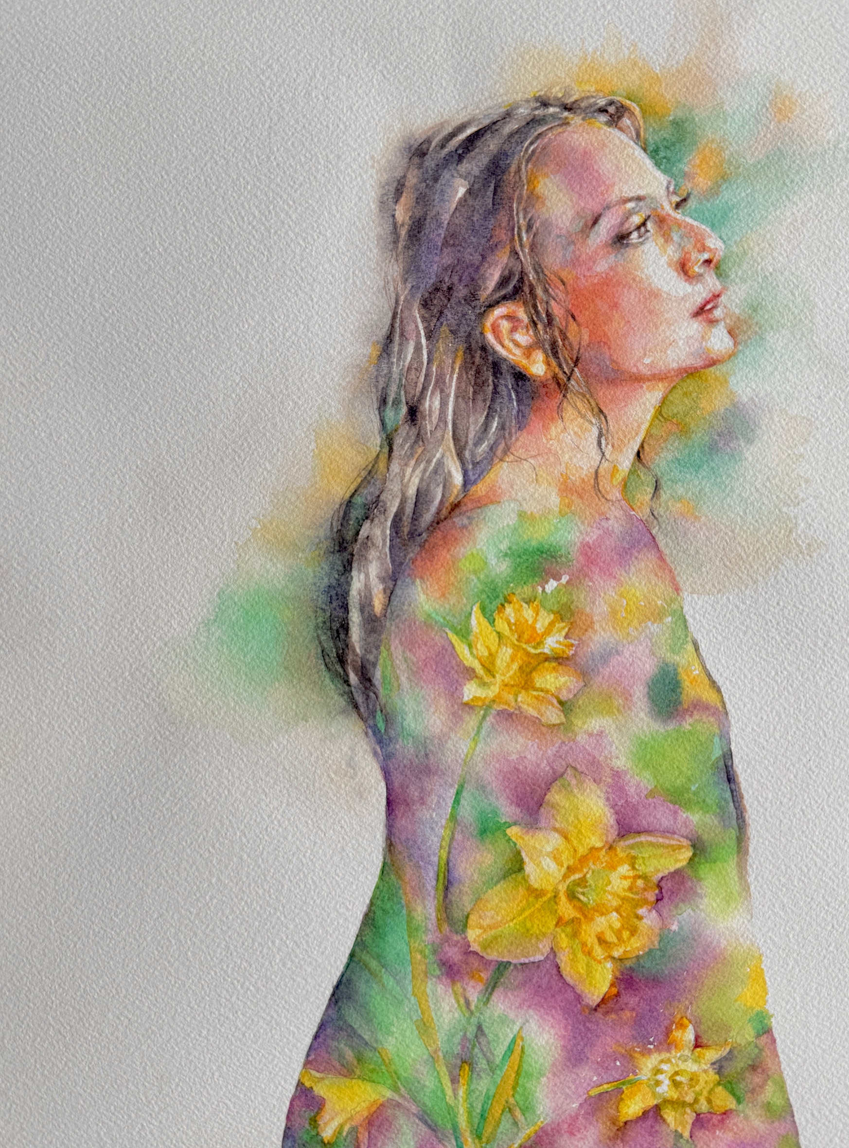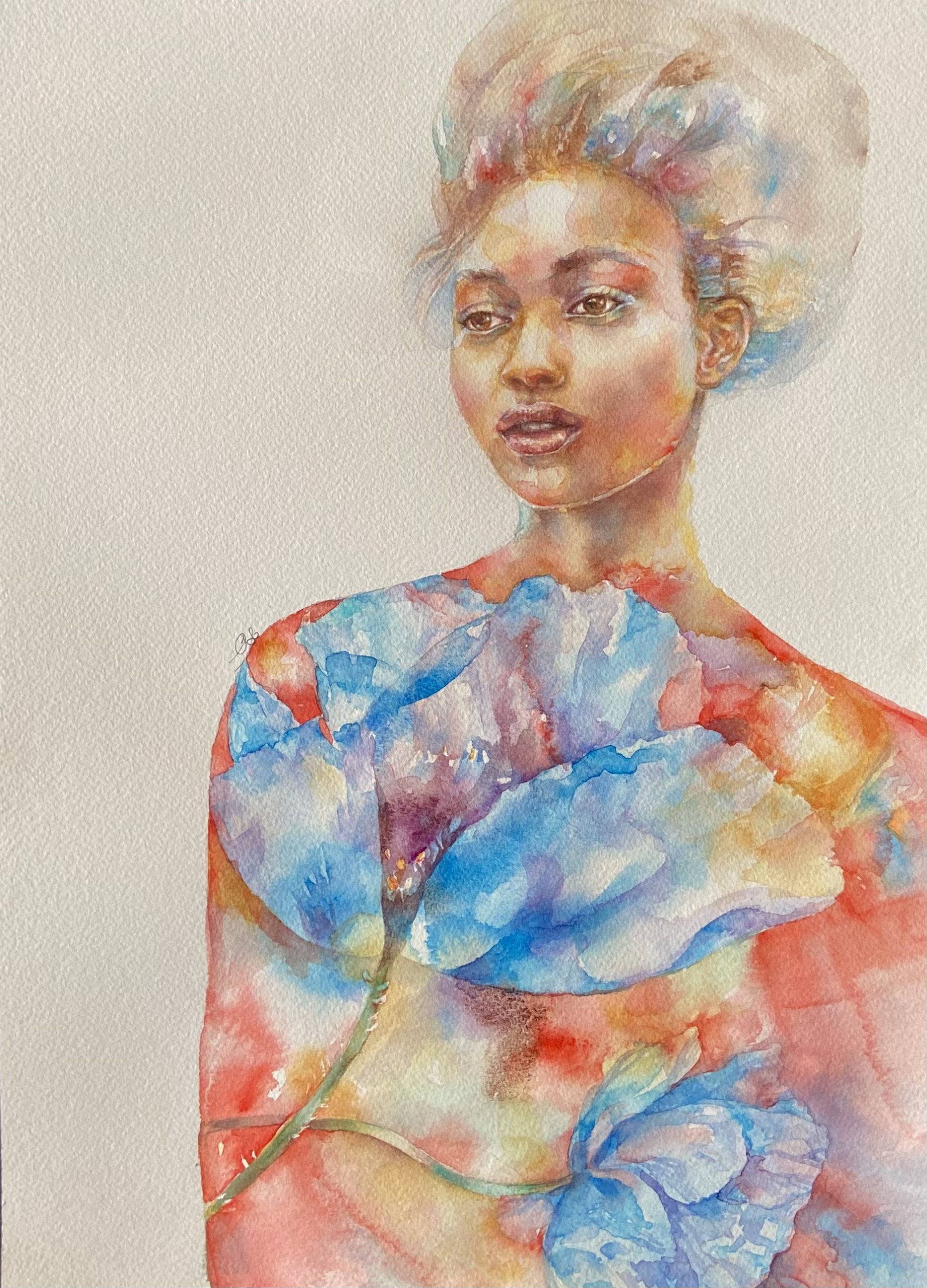 “Soul and Flowering”, 16×20″, matted and framed watercolor, $600