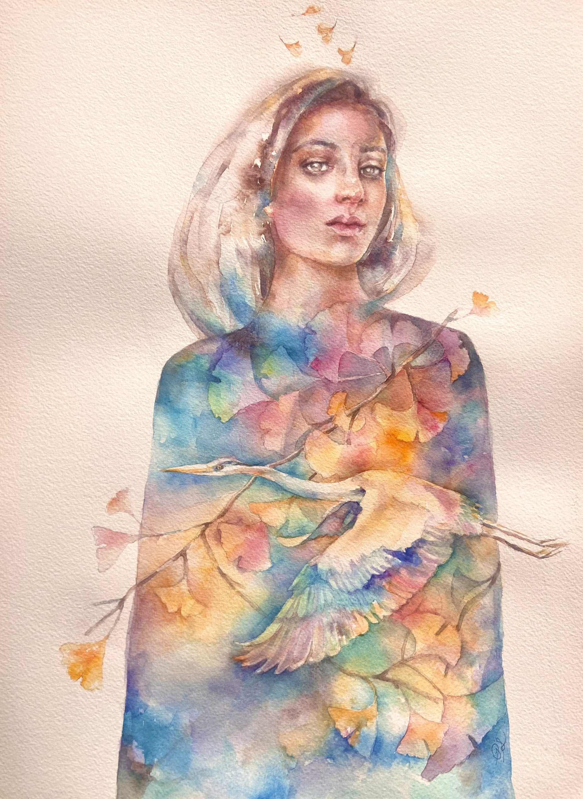 “The Heart’s Flight “- watercolor, 16×20, matted and framed- $600